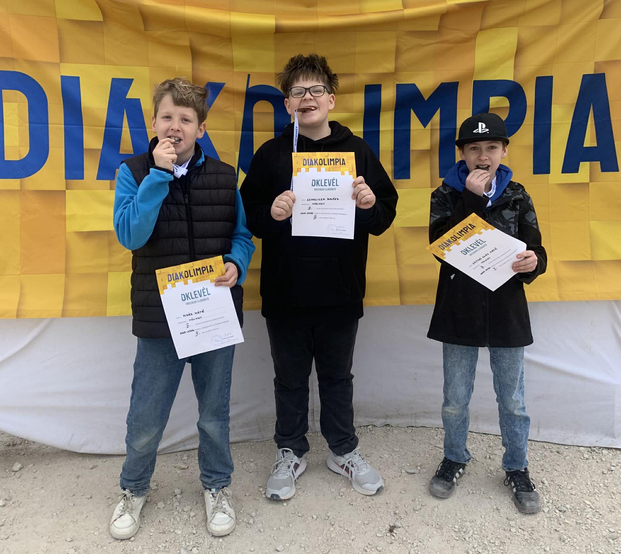 Április 14-én Szigetszentmiklóson rendezték meg a Mölkky (finn teke) Diákolimpia Közép-Magyarországi területi döntőjét. Iskolánkat három tanuló képviselte az egyéni versenyek során. A II. korcsoportban Mráz Máté (3.a) és Szmolicza Balázs (5.a), míg a III. korcsoportban Zatykó Alex Máté indult a Hild színeiben. A jó hangulatú versenyen, bár kis létszámú mezőny vett részt, annál lelkesebb küzdelem zajlott a helyezésekért. Tanulóink kiválóan szerepeltek: Gratulálunk a szép eredményekhez, és sok sikert kívánunk a következő megmérettetéshez!- a II. korcsoportban Mráz Máté (3.a) ezüstérmet, Szmolicza Balázs (5.a) bronzérmet szerzett,