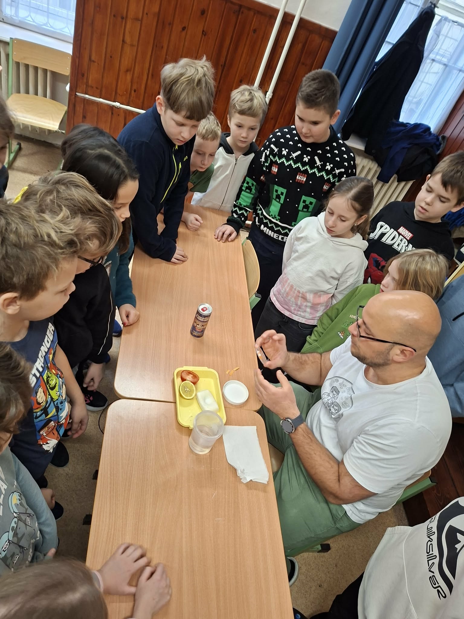 Tudomány + játék = élmény? Nálunk igen!Különleges élményórán vehettek részt iskolánk diákjai: a STEMüveg program keretében a természettudomány szó szerint "életre kelt" a tanteremben! Nem tankönyvből tanultunk - hanem kísérleteztünk, gondolkodtunk, kérdeztünk és nevettünk. Vajon miért pezseg a szénsavas víz? Mitől "táncol" a szőlő? És mit keres a hintőpor vagy a mosogatószer egy tanórán? A gyerekek nemcsak nézők voltak, hanem aktív felfedezők: saját ötleteikkel, kérdéseikkel és megfigyeléseikkel formálták az órát. Közben észrevétlenül tanulták meg a tudományos gondolkodás alapjait. A STEMüveg célja, hogy megőrizze a gyermeki kíváncsiságot, és megmutassa: a tudomány ott van a mindennapjainkban - és izgalmas! Köszönjük az élményt a program megálmodóinak: Jedlovszky-Hajdú Angélának, Jedlovszky Pálnak, Molnár Kristófnak és Halmóczki Saroltának!